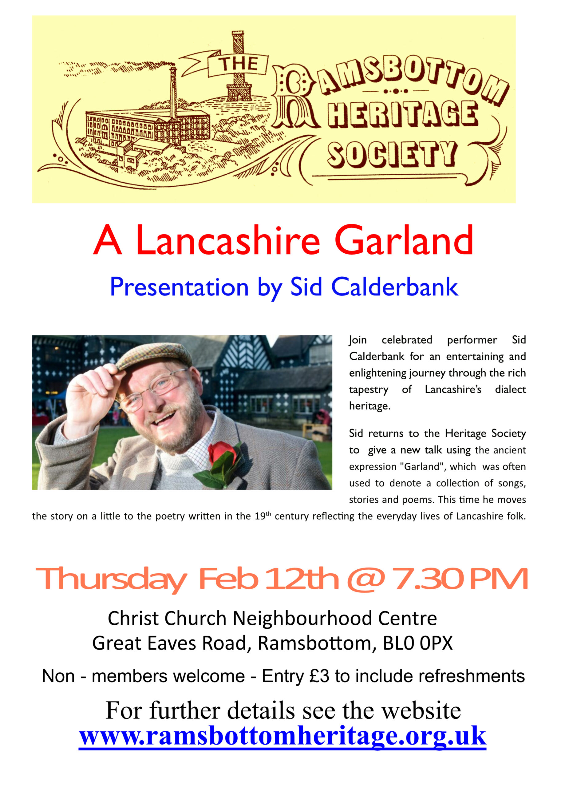 February 12 Sid Calderbank : A Lancashire Garland -The histoy of Lancashire & its dialect over the last 500 years.